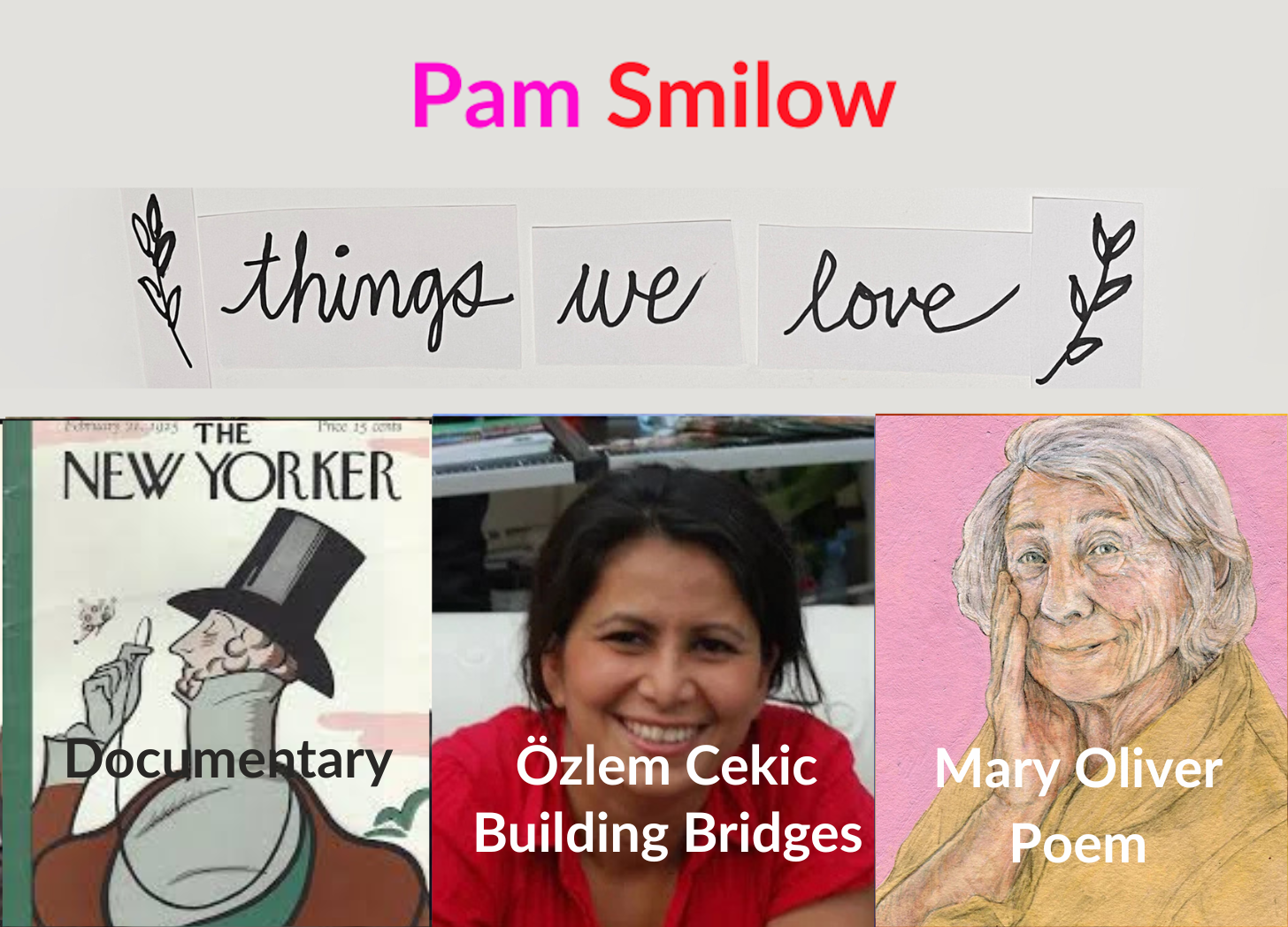 New York City based contemporary artist, Pam Smilow, began writing the creative lifestyle blog “things we love” in an effort to foster a sense of community during times of isolation and reflection. To read more about her and her art, visit her website and check out the essay written by Frank Matheis entitled The Sophisticated Innocence of Pam Smilow.